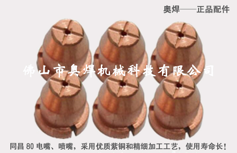 同昌80電嘴、噴嘴采用優(yōu)質(zhì)紫銅和精細(xì)加工工藝,使用壽命比普通電極,噴嘴耐用3倍以上!