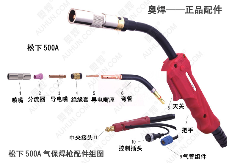 松下500A氣保焊槍(氣冷式)適用于:350-500A氣保焊機(jī)使用,暫載率60%時(shí)焊機(jī)電流500A,使用焊絲直徑:0.8-1.6MM,相關(guān)配件:保護(hù)套,彎管,導(dǎo)電咀,連桿,絕緣螺母,送絲管。